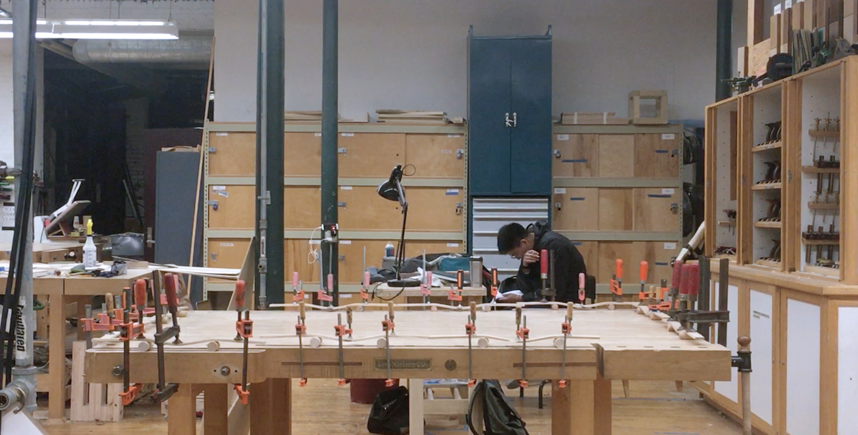 Ripple is a lighting exploration derives from traditional woodworking techniques such as steam-bending and staves construction. While having the same curvature, the steam-bent staves alternate around a circle to shape a rhythmic form. Each piece is carefully carved into a specific shape that get thinner and thinner to the edges. The warm and soft light accentuates the beauty of natural wood grain, creating a calm atmosphere in the space.